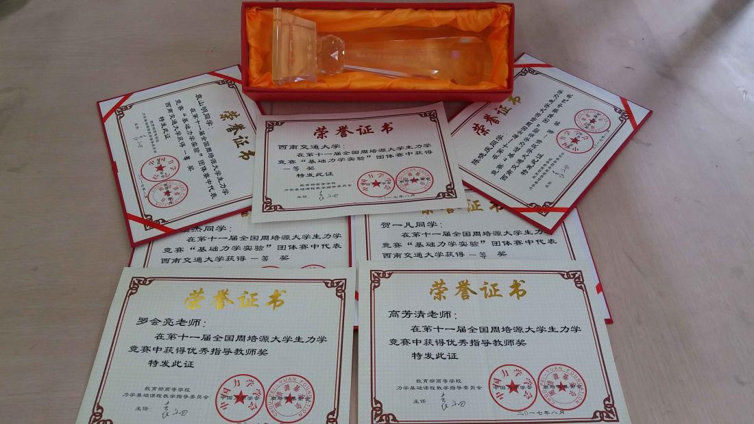 在今年的竞赛中,交大学子在个人、团体赛中均表现优异。个人赛有省级一等奖15位、二等奖17位,三等奖39位;“基础力学实验”团体赛中喜获一等奖,“理论设计与操作”团体赛中获获团体优秀奖。同时k1体育十年品牌获优秀组织奖。