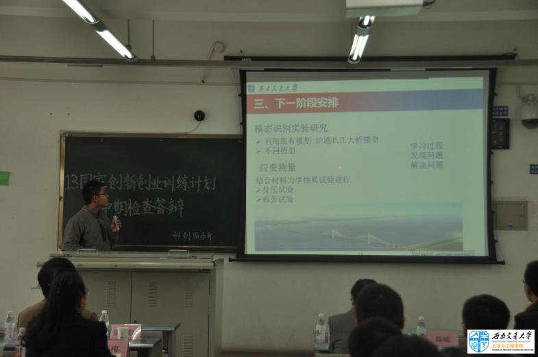 2013年10月31日下午2:00,公司2013年“国家创新创业训练计划”项目中期检查答辩会在一号教学楼多媒体教室顺利举行。本次答辩会由教务处主办,老员工科创俱乐部承办,来自各公司的79个项目参加了答辩,赵人达、廖海黎、朱德贵、赵舵、鲁雄、李毅等56位项目指导教师组成的评委组出席了本次答辩会。