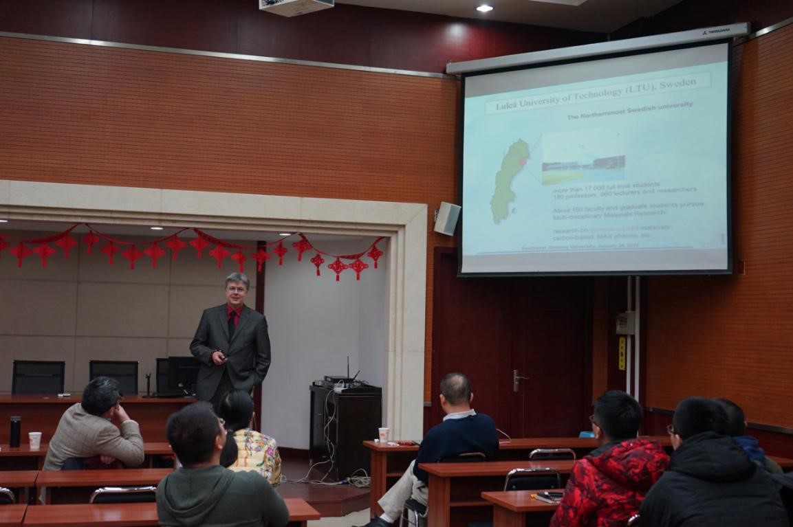 Alexander V. Soldatov教授首先给大家介绍了其所在的吕勒奥理工大学以及他的研究组所做的研究工作,然后以“Carbon nanotubes under high dynamic and static compression: structural integrity limits and beyond”为题,系统地介绍了SWCNTs、DWCNTs和MDCNTs在动态和静态压力加载下的结构完整性,以及对从破碎的碳纳米管中衍生出新形式的碳纳米结构的探索工作。