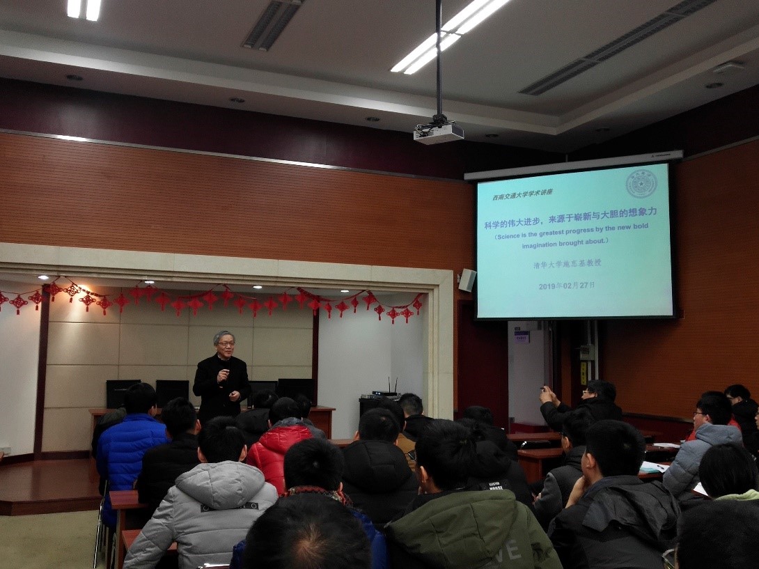 2019年2月27日下午,清华大学施惠基教授应邀来公司进行学术交流,并在九里行政楼240学术报告厅做学术讲座,讲座题目为:科学的伟大进步,来源于崭新与大胆的想象力。k1体育领导、青年教师,以及公司研究生等50余人参加了本次学术报告。
