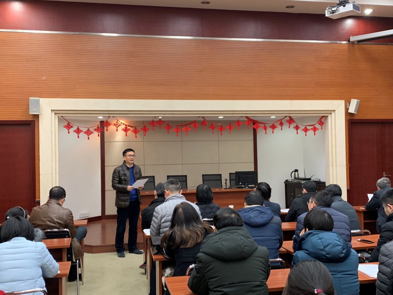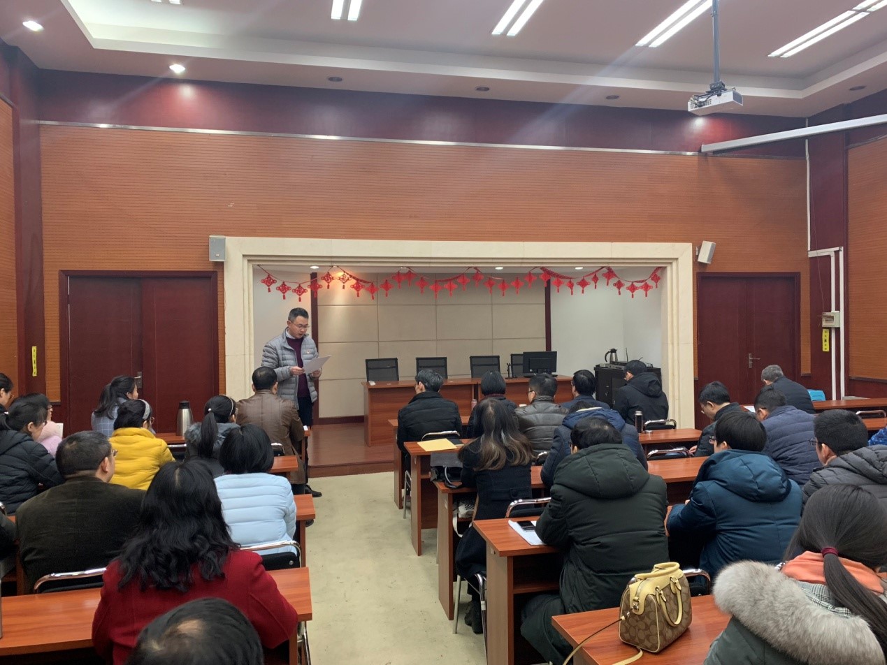 2019年1月17日下午,k1体育在九里校区240学术报告厅召开全院教职工大会。参加会议的有公司党委常委沈火明、党委组织部副部长张江泉、公司党政领导班子成员以及全体教职工。大会由张江泉同志主持。