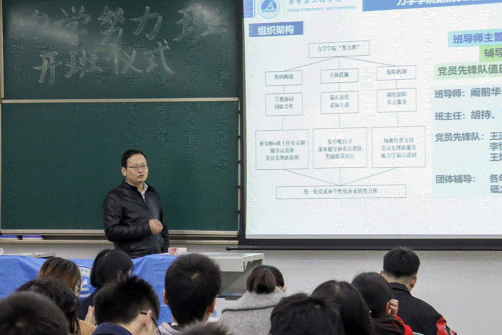 据悉,“努力班”是力学公司为传承“双严传统”、帮助学困生解决学习难题而建设的一个虚体班级,由公司副经理和副书记担任班导师,本科生党支部书记和教务员担任班主任。入班条件为“一学期未通过15个学分或挂科达到3门以上”。公司会组织班级同学每晚在固定教室自习,由本科党员先锋服务队负责值班签到及答疑,针对学习特别困难同学进行一对一帮扶,公司专业老师、辅导员老师、砥力学霸宣讲团将不定期开展学习交流、期末答疑、重点讲解等活动并提供保障帮助。学期内通过15个学分的同学即可出班,对成绩提升明显的同学授予“学业进步奖”。建设“努力班”,旨在融合推进力学公司双严学风行动和党员先锋力行动,为班级同学今后顺利深造或就业打下坚实基础。