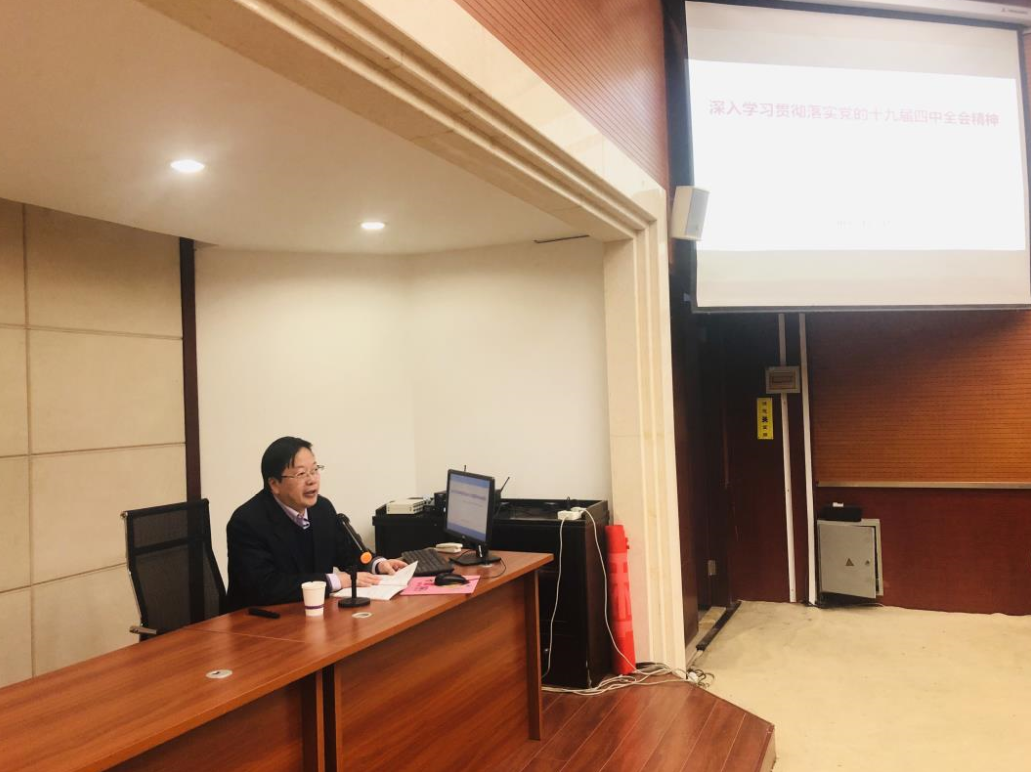 2019年12月12日下午16:30,在九里校区1号综合楼公司240学术报告厅,公司党委常委沈火明教授围绕《深入学习贯彻落实党的十九届四中全会精神》,为k1体育全体教职工带来了一次既高屋建瓴又接地气的专题党课。公司党委书记栗民、经理康国政等全院教职工参加了党课。