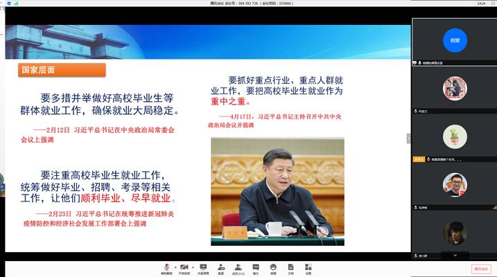 首先,招就处就业管理科科长陈曦轶老师用历年公司、公司就业数据向同学们说明了今年的就业形势,并就今年一些疫情下的就业激励政策向同学们进行了解读,希望同学们抓住机遇,找到自己满意的工作岗位。