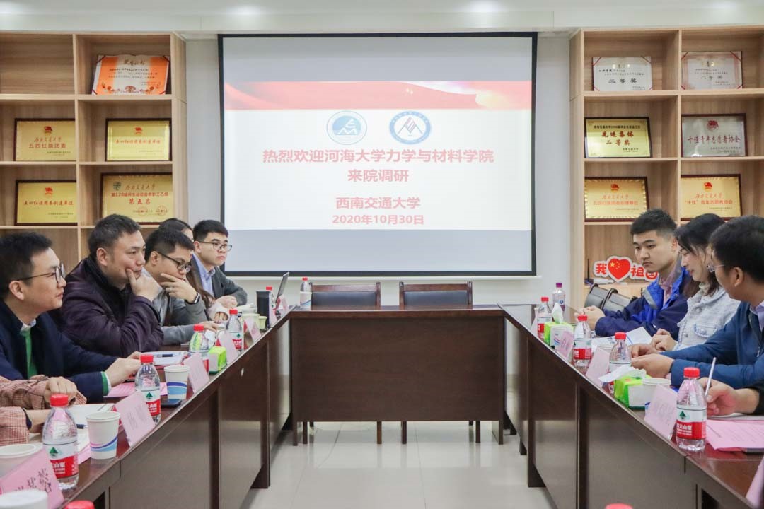 10月30日上午,河海大学力学与材料公司党委副书记朱倬然一行来到k1体育十年品牌,到k1体育和材料科学与工程公司开展调研交流。力学公司党委副书记孔祥彬、材料公司党委副书记章春军带领两院员工工作组老师们与河海大学力材公司在X2128会议室展开了热烈的交流。