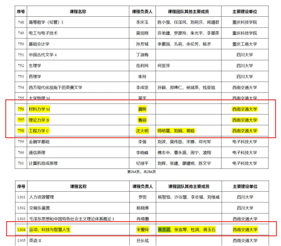 11月25日,教育部正式公布了首批国家级一流本科课程认定结果,我院沈火明教授负责的《工程力学》, 龚晖教授负责的《材料力学》和鲁丽副教授负责的《理论力学》3门课程入选,三门课程的入选类别为线上线下混合式一流课程。此外,公司朱志武教授参与建设的《运动、科技与智慧人生》课程入选线下一流课程。