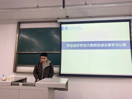 学业进步奖员工代表熊志诚同学分享了学习心得。他结合自身学习经历,强调应注重平时学习,按时上课,课后认真完成作业,保证每天都有较高的学习效率。他在自己的不懈努力下,成功战胜了学习难题,一学期的课程全部通过。