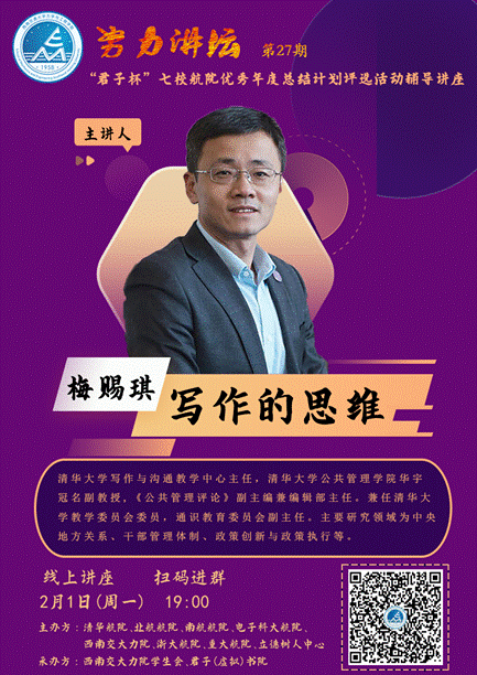 2021年2月1日晚7点,为倡导和鼓励员工养成自省与规划的好习惯,配合“君子杯”七校航院老员工优秀年度总结计划评选活动,力学公司党委副书记孔祥彬老师特邀清华大学写作与沟通教学中心主任梅赐琪副教授做客努力讲坛分享“写作的思维”,来自k1体育十年品牌、清华大学、浙江大学、北京航空航天大学、南京航空航天大学、电子科技大学、重庆大学等十多所高校近500名老师和同学参加了本次线上讲座。本次讲座由力学公司员工会和君子(虚拟)书院承办。